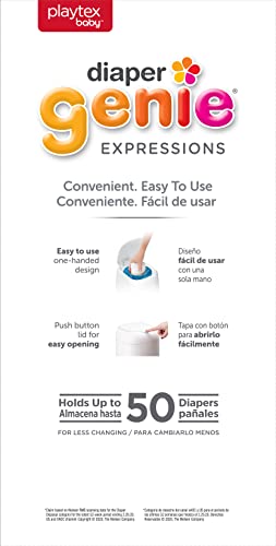 Details: Babies go through 9,600 diapers in 3 years . . . that’s a poop ton of diapers (pun intended). You’ll need a place to hold all those diapers without having to constantly run to the trash can. Don’t look any further than the Diaper Genie Expressions Diaper Pail! Seal in odors with the Push-N-Lock clamp to keep your nursery and home smelling fresh. The easy to use one-handed design makes throwing away dirty diapers simple and convenient while the durable multi-layer refill bags help lock in odors and germs. Being a new parent brings new responsibilities and stressing about diaper smells doesn’t need to be one of them. From the #1 Selling Diaper Pail brand*, the Diaper Genie Expressions Pail is all you need to keep your baby’s nursery as fresh as can be. *Angelcare calculation based on Answers On Demand for the Diaper Pail Category for 52 weeks ending 09.10.2022 time period. Copyright © 2022, Nielsen Consumer LLC.