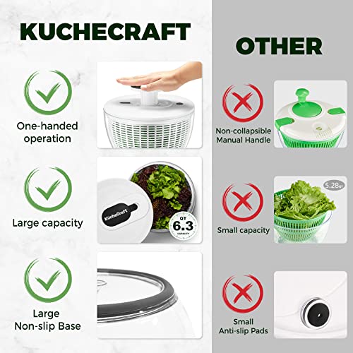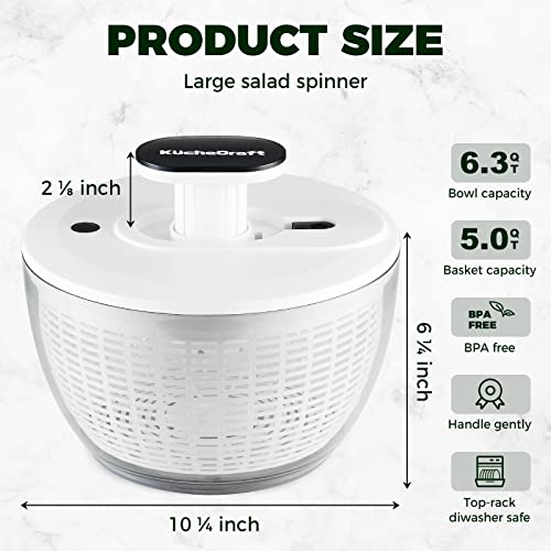 KucheCraft Salad Spinner Large 6.3 Qt, Manual Lettuce Spinner for Vegetable Prepping, One-Handed Pump Fruit Spinner Dryer with Bowl and Colander, Dishwasher Safe Veggie Fruit Washer Spinner-Black]|\